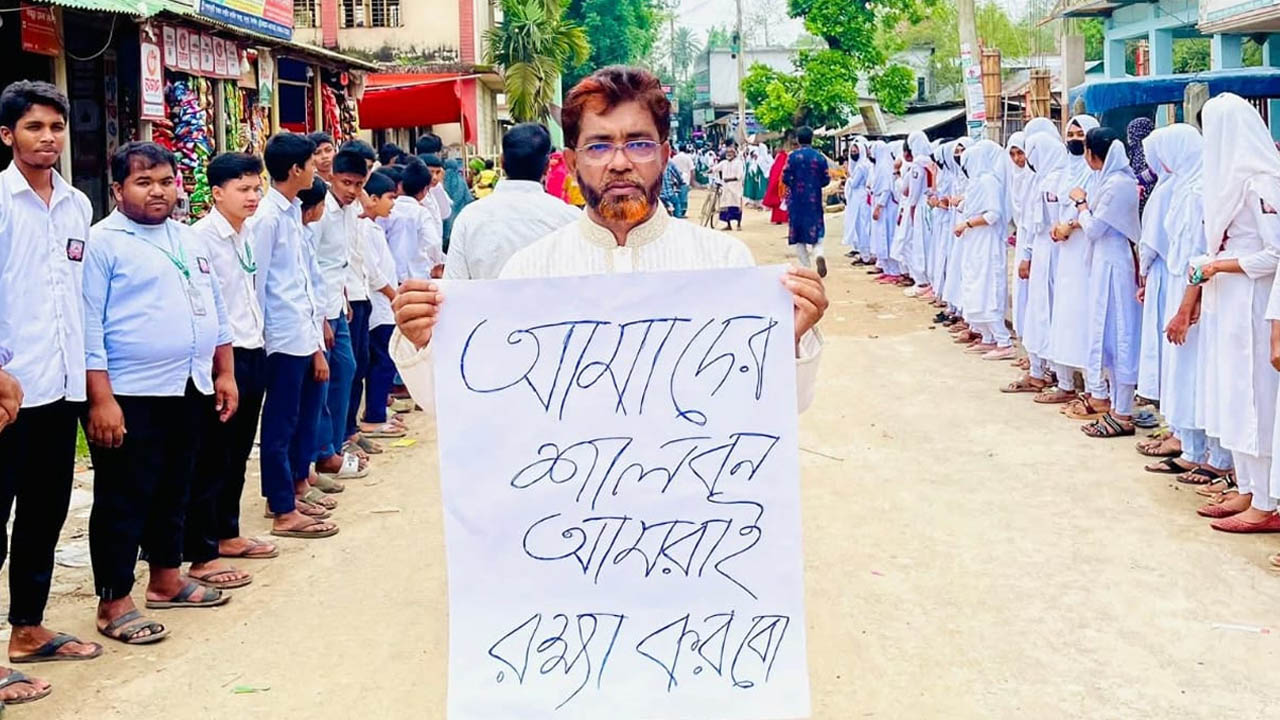 শালবন রক্ষায় শোলাকুড়ীতে মানববন্ধন