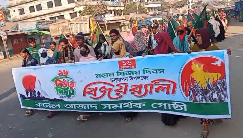 এদিকে সকালে ধনবাড়ী উপজেলা শহরে আজাদ সমর্থক গোষ্ঠীর ব্যানারে বিজয় দিবসের বর্ণাঢ্য শোভাযাত্রা বের হয়। বিশাল ওই মিছিল পৌর শহর প্রদক্ষিণ করে।